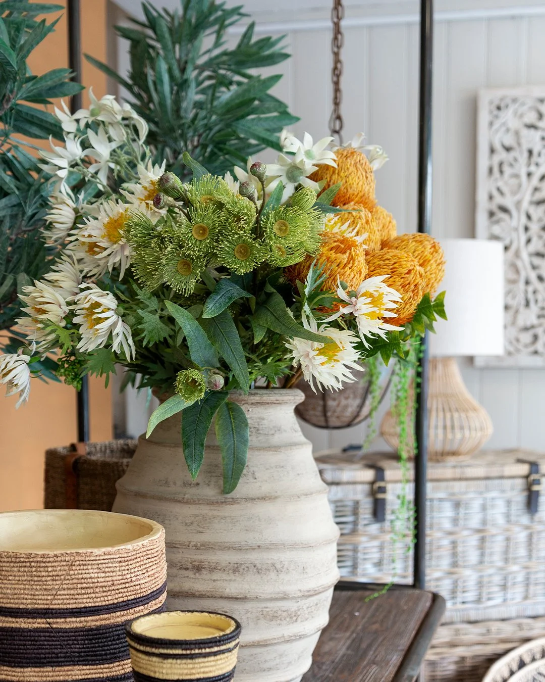 To achieve a relaxed, coastal-boho vibe, incorporate gentle, natural textures, subdued colours, woven fabrics, abundant botanicals, and light, weathered wood furniture. Discover simple ways to introduce this soothing, layered look into your home by visiting Precedence Interiors.